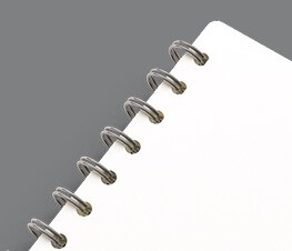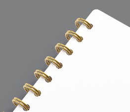 Металлическая пружина типа Wire-O с нейлоновым покрытием — идеальный материал для брошюровки блокнотов. К выбору предлагается четыре цвета покрытия — белый, черный, серебро и бронза. Выбор цвета не влияет на стоимость заказа.