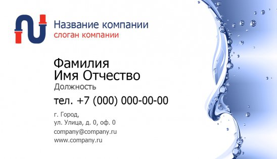 • внесите в уже готовый шаблон визитки сантехника свою информацию (название компании, ФИО, адрес, телефон, электронную почту, сайт – если есть);