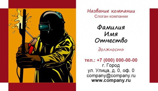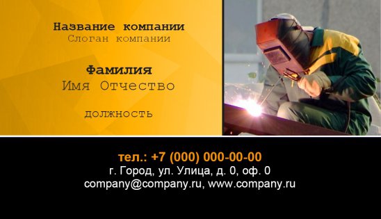 Мы прекрасно понимаем, что вы, скорее всего, далеки от тонкостей дизайнерского оформления визитных карточек. Но поверье, работая с нашим конструктором, у вас не возникнет даже малейших сложностей. Каждая визитка категории «Сварочные работы» состоит из обязательных элементов:
