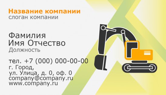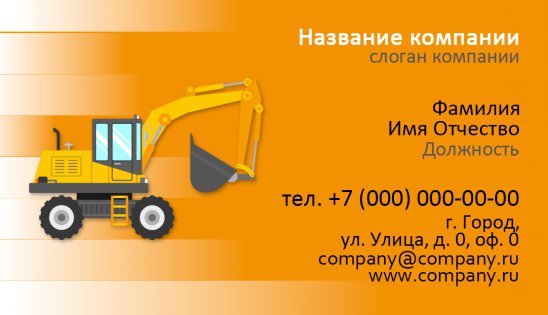 Перед вами лучшие визитки экскаватора, собранные в единую базу шаблонов на сайте типографии «Артикул». Пусть вас не смущает слово «шаблон», ведь индивидуальность понравившемуся варианту придается буквально на несколько минут. Для этого вам нужно: