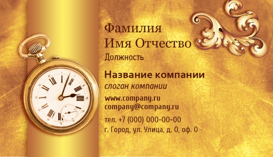 Заказать шаблон визитки для часовых дел мастера невероятно просто и быстро! Всего в несколько кликов вы сможете получить высококачественную полиграфическую продукцию, для этого вам нужно выбрать один из шаблонов визиток для часовой мастерской, заполнить поля контактной информации в режиме онлайн. Уже через сутки наш курьер доставит вам заказ.