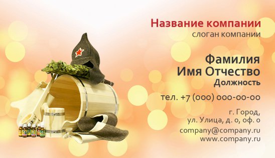 Многие выбирают баню или сауну для отдыха в конце рабочего дня, как продолжение вечеринки или другого культурно-массового мероприятия. В таких условиях человек отдыхает как физически, так и духовно, заметно поправляет свое здоровье и просто интересно проводит свободное время. Мы рекомендуем использовать визитки для бани, дабы потенциальные клиенты превращались в реальных и возвращались к вам снова и снова.
