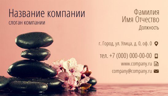 Если ваша компания является Spa-салоном, то вам необходимо большое количество визиток, для того, чтобы ваши клиенты смогли быстро и просто узнать о вашем графике и посетить нужного специалиста или нужную процедуру! Именно для такой ситуации наше предложение - шаблоны визиток для Spa-салонов от «Артикула»!