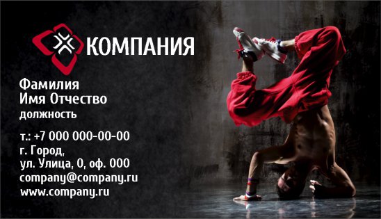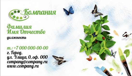 • добавляем текст (название компании, слоган, ФИО и должность специалиста, контактные данные);