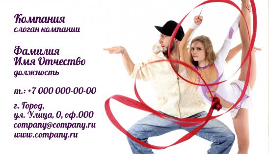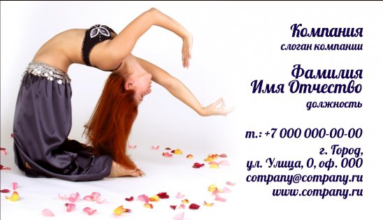 • добавляем текст (название компании, слоган, ФИО и должность специалиста, контактные данные);