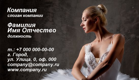 В данном разделе вы найдете визитки категории «Культура», предназначенные для использования в разных направлениях: «Изобразительное искусство», «Танцы, хореография, балет», «Блоггеры, писатели», «Боди-арт», «Антиквариат», «Кинотеатры», «Музыка», «Скульптура», «Театры». Каждая визитная карточка имеет соответствующее дизайнерское оформление. Единожды увидев визитку, можно сразу догадаться, к какой отрасли она относится.