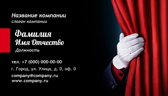 Если вам необходима визитка для театра - выберите понравившийся вам шаблон визитки для театра из нашей коллекции в каталоге в режиме онлайн или создайте свой собственный. Вам необходимо только добавить контактную информацию в макет и оформить заказ!