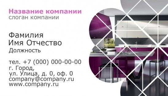 Выбранный шаблон визитки серии «Кухни» онлайн-редактор меняет согласно вашим пожеланиям. Что для этого нужно сделать?
