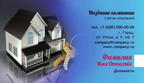За визитки от типографии «Артикул» действительно не стыдно. Помимо высокого качества печати, вас ждет уникальная возможность самостоятельно разработать для себя визитную карточку. Выбирайте лучшие образцы визиток серии «Недвижимость», меняйте цвет фона и шрифта, вносите всю необходимую информацию: