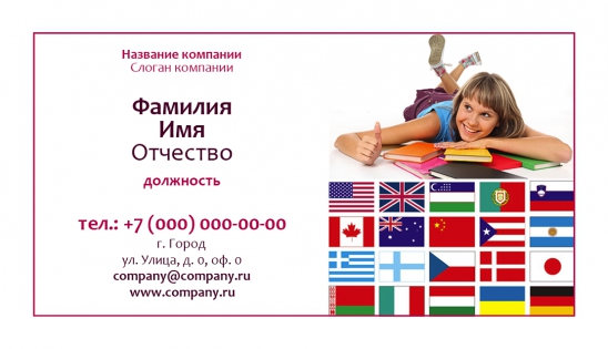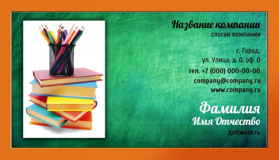 Перед вами большая база визиток категории «Образование» и специальный редактор, который позволит любому шаблону придать индивидуальности. Нашими услугами уже воспользовались учителя начальных школ и центров раннего развития, частные репетиторы, авторы различных тренингов, инструкторы школ вождения. Это далеко не все направления, в которых требуются визитные карточки. Например, своего владельца всегда найдет визитка дополнительного образования, изучения иностранного языка (английского, французского, немецкого и пр.).