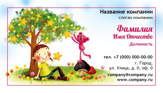 Для это вам необходимо лишь выбрать из качественно подобранной коллекции шаблонов визиток для няни оригинальный макет, заполнить его всей информацией о вас или вашей компании, оформить заказ в режиме онлайн. Уже на следующий день компания «Артикул» доставит вам высококачественную полиграфическую продукцию в указанное время!
