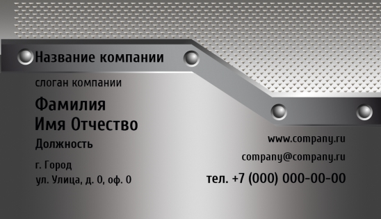 Первое, на что нужно обратить внимание, - стилевое оформлении визитки для производства металла и металлоконструкций. Стиль должен быть строгим, выдержанным, деловым. Цветовая гамма при этом также подбирается соответствующая. Следующие важные этапы создания визитки:
