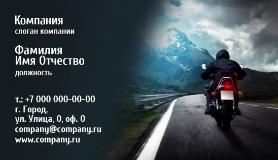 Благодаря нашему сервису у вас есть уникальная возможность самостоятельно создавать достойные визитки серии «Мотоспорт». Для этого достаточно: