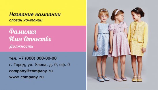 Наша типография предлагает вам отличный способ сделать визитную карточку самостоятельно с помощью специального редактора. Визитка детского магазина одежды создается следующим образом: