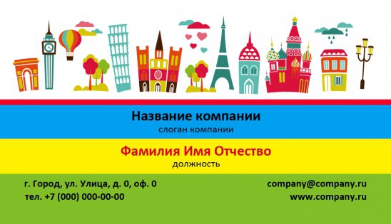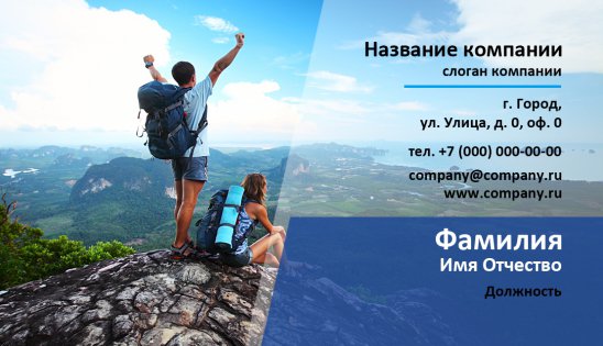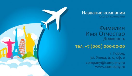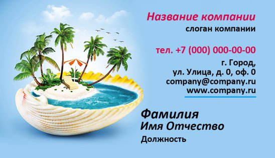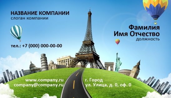 • заполнить шаблон визитки серии «Туризм» всей необходимой информацией (контактные данные, название компании, ФИО представителя и пр.);